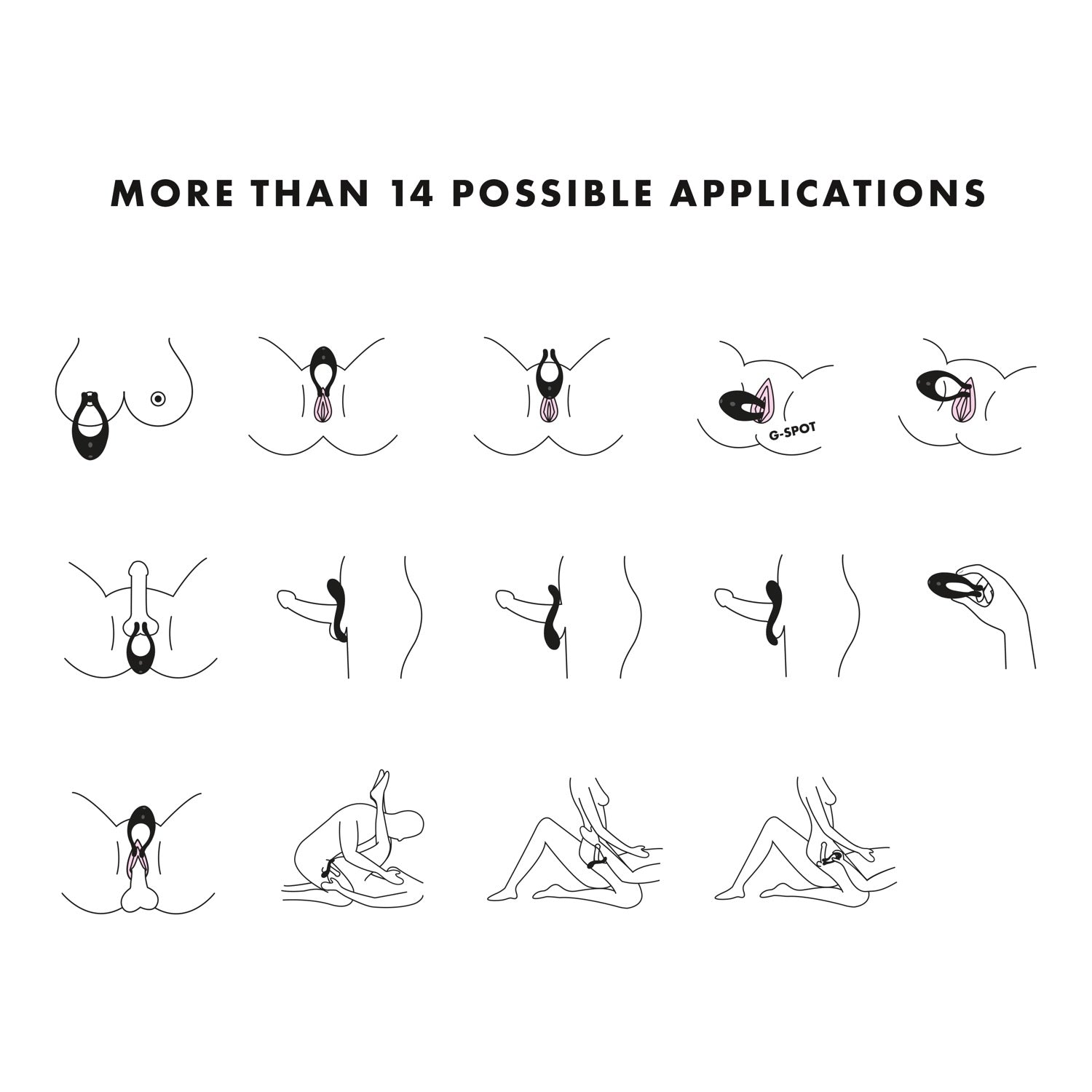 Thanks to its ergonomic U-shape the two Satisfyer Partner Multifun are suitable to use as a penis ring, a perineum stimulator, a nipple massager… and many more ways to enjoy, up to 14 different ways!