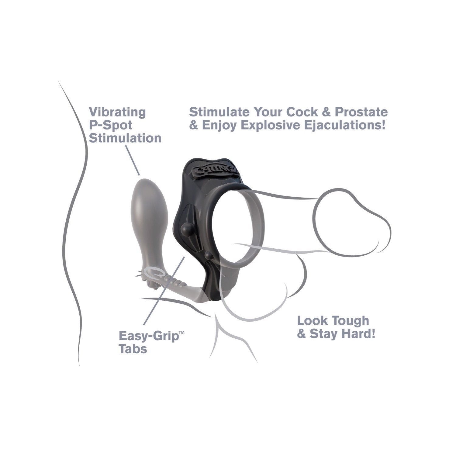 With the Rock Hard Ass-Gasm in your ass and the ring wrapped snug around your cock and balls, you'll stay harder and stronger than ever before! The stretchy silicone ring puts the squeeze on performance letdowns, maintaining thick, throbbing erections that last longer! The round, smooth plug makes entry and retrieval a snap, while the thin, tapered shaft ensures the plug will stay in place between your cheeks when the action heats up.