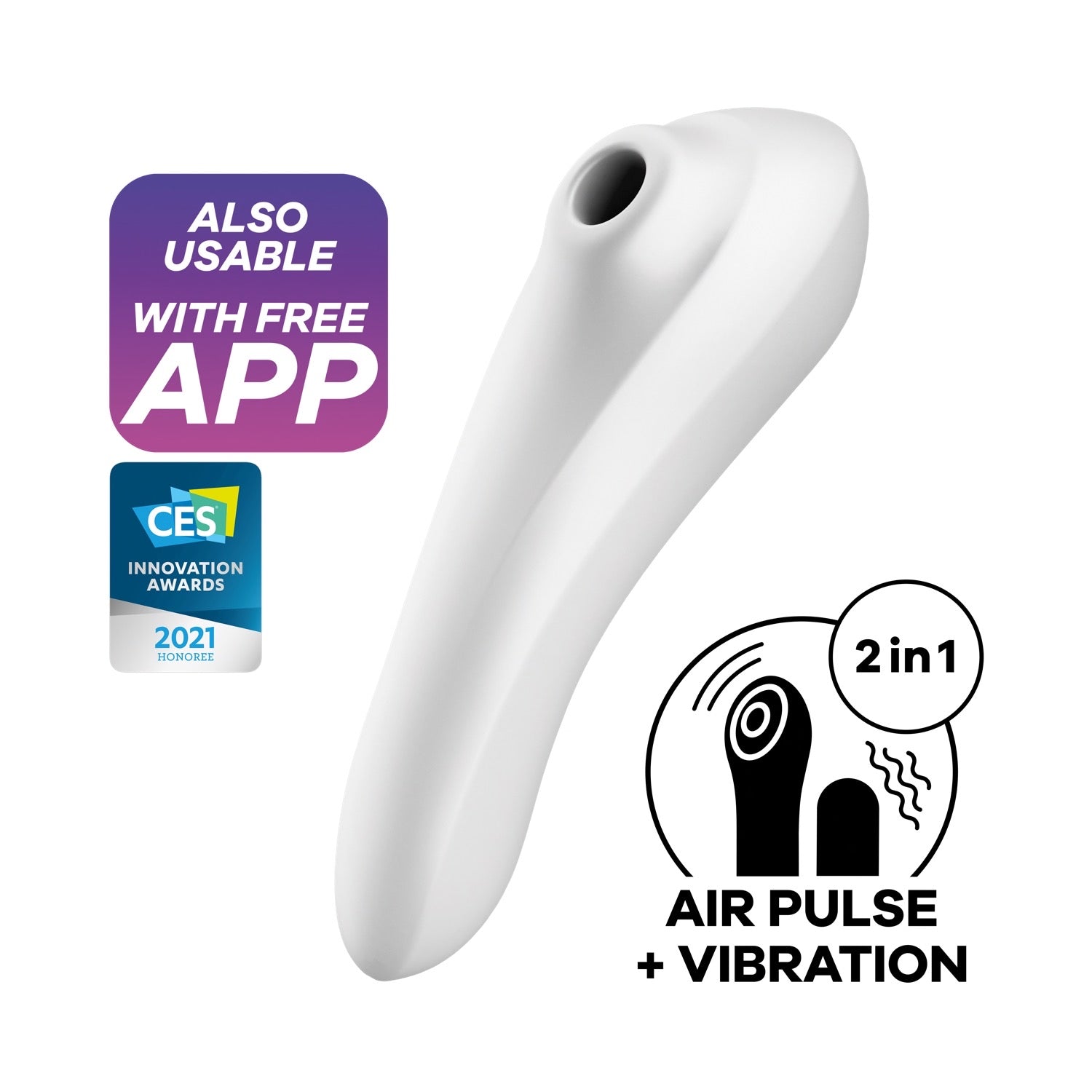 The tastefully minimalist design of the DUAL PLEASURE features multi-functional aspects, with the option to independently control clitoral Air Pulse pressure waves or stimulating g-spot vibrations. Available in white and mauve, the DUAL PLEASURE is made of 100% body safe silicone. This sensual vibe is soft to the touch and features a more precise Air Pulse chamber for concentrated stimulation. In addition, thanks to its sensually curved design, when flipped for internal use, the DUAL PLEASURE can easily be used to angle into the treasured g-spot.