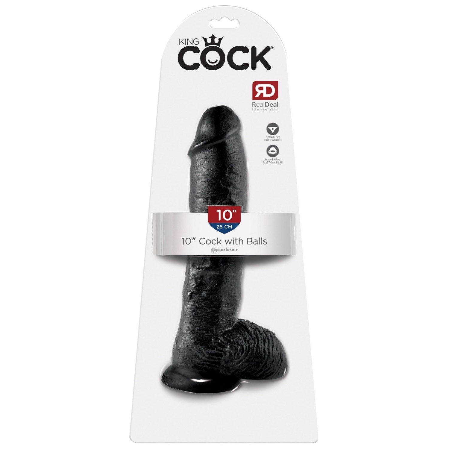 10" कॉक बॉल्स के साथ - काला 25.4 सेमी (10") डोंग